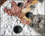 El sciaterio está construido con rocas de diferentes tipos, en su mayoría extraídas de la región, como son la piedra caliza, mármoles rojo y blanco, travertino, laja amarilla, etc.