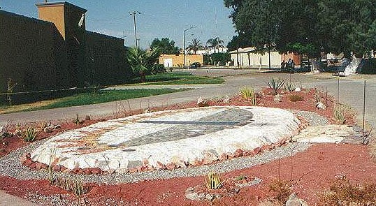Esta foto muestra el conjunto recién terminado. Su entorno está adornado con plantas de esta región, conocidas con los nombres de Candelilla, Gobernadora, Lechuguilla, Sangre de Drago, Huevo de toro, Visnaga, Pitaya, Corona de espinas, Nopal rastrero, Cardenche, y otras.