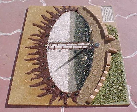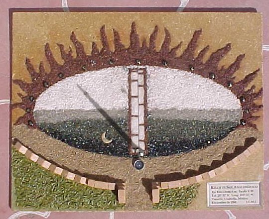 El diseño artístico de este reloj analemático fue inspiración del arquitecto Humberto Torres. Antes de construirlo se realizó una maqueta a escala, la cual vemos funcionando en estas fotografías.